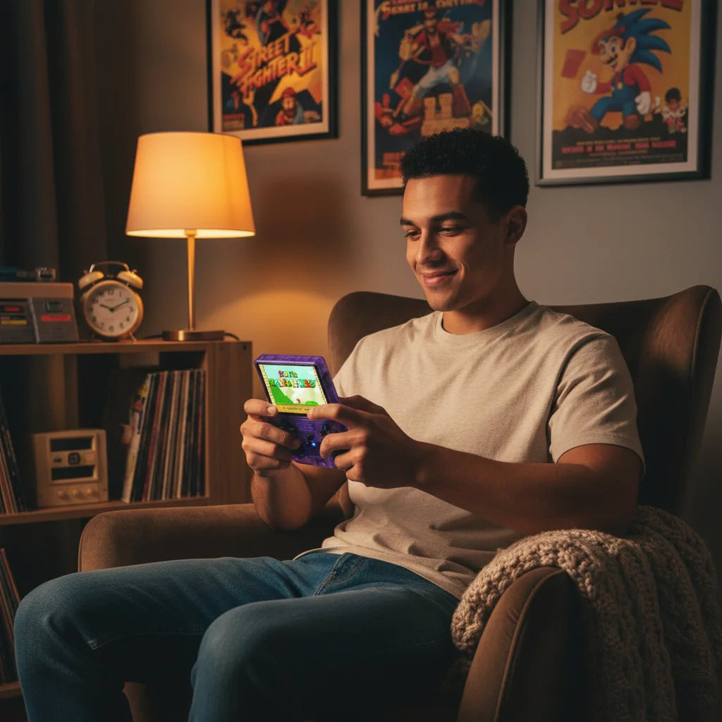 Your retro escape fits right in your pocket. With 10+ hours of battery life, those epic gaming sessions don't have to end. Perfect for commutes, travel, or just chilling on the couch.